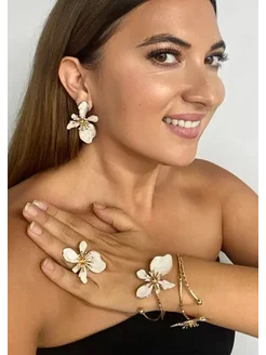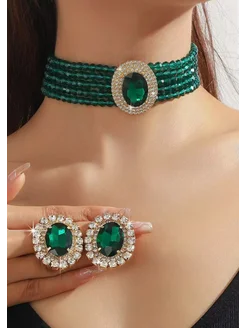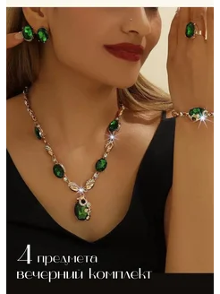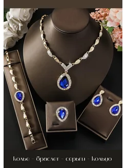 Набор колье крупные синие серьги браслет кольцо Хюррем