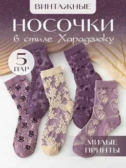 Носки женские длинные набор 6 пар с цветным принтом рисунком