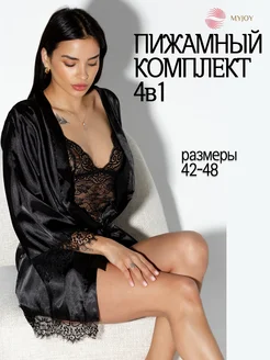 Пижама сексуальная с шортами и халатом на подарок 4в1