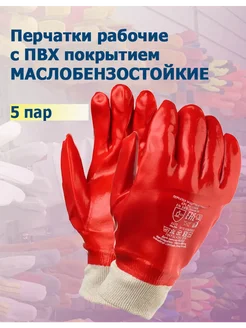 Перчатки рабочие облитые ПВХ, маслобензостойкие, 5 пар