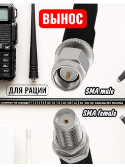Все размеры SMA male - SMA female RG58 10м кабельная сборка