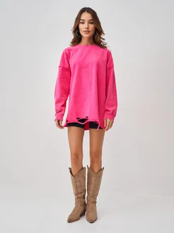 Свитшот теплый варенка рваный оверсайз лонгслив кофта