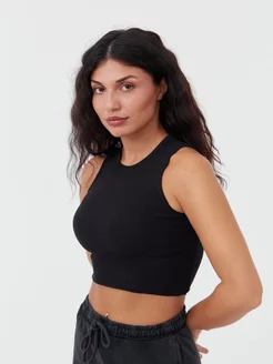 Майка-топ под пиджак в рубчик короткая базовая