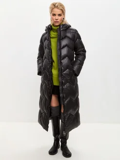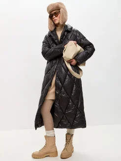 Пуховик зимний длинный стеганный с поясом, "Шуховская башня"