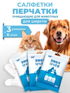 Влажные салфетки перчатки для кошек и собак 3 шт