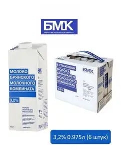 Молоко ультрапастеризованное 3.2% 0,975л х 6шт