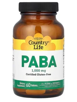 PABA Аминобензойная кислота витамин B-10 1000 мг 60 таблеток