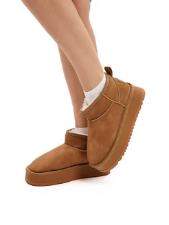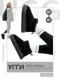 Теплые угги короткие с мехом на платформе