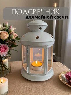 Подсвечник фонарь металлический новогодний для чайной свечи