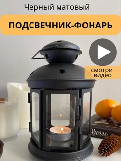 Подсвечник фонарь металлический черный для свечи