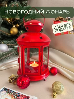 Подсвечник фонарь новогодний металлический для свечи