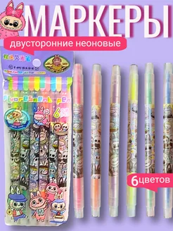 Текстовыделители неоновые Лабубу, набор 6 шт