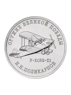 Монета 25 руб. Конструктор Н.Н. Поликарпов (У-2). 2019