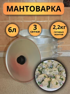 Мантоварка пароварка алюминиевая 6л, 3 сетки