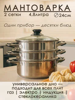 Мантоварка из нержавейки, кастрюля 4.8 литра, 2 сетки