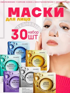 Тканевые маски для лица с гиалуроновой кислотой, 30 штук