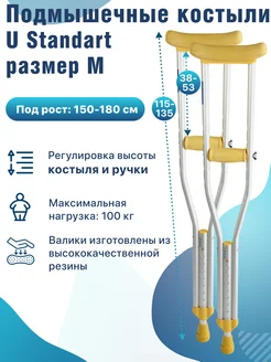 Костыли подмышечные 150-180 см U Standart регулируемые