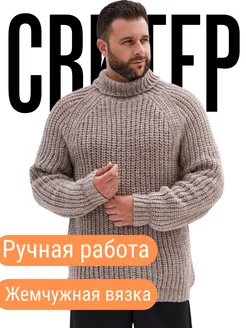 Свитер теплый вязаный с высоким горлом меланж хаки