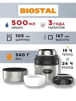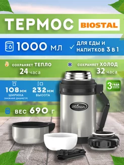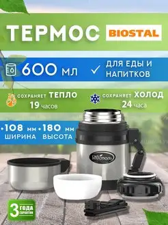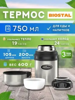 Термос для еды и супа Биосталь 0.75 л с широким горлом