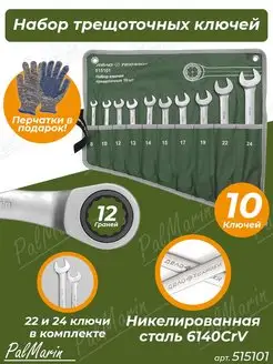 Набор ключей с трещоткой комбинированных 10 шт. 515101
