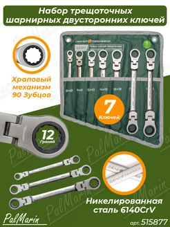 Набор ключей с трещоткой шарнирных двусторонних 7 шт 515877