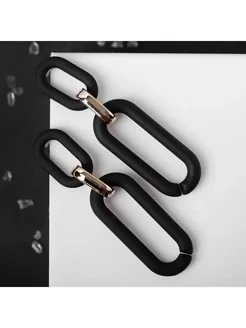 Серьги металл "Цепь" овалы 3 звена цвет золотисто-чёрный