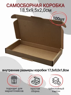 Самосборная картонная коробка 18,5x9,5x2 см 100 шт