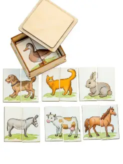 Деревянные разрезные пазлы картинки половинки Ферма