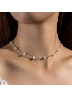 Шейная цепочка с бусинами бижутерия стильный аксессуар
