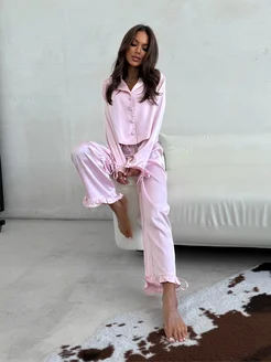 Пижама атласная с рубашкой и брюками