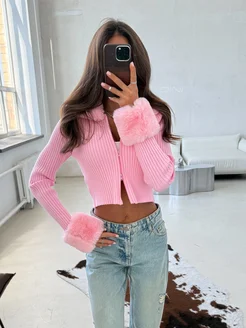 Кардиган укороченный на молнии с мехом