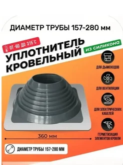 Кровельный уплотнитель дымохода прямой № 7 157-280 mm серый