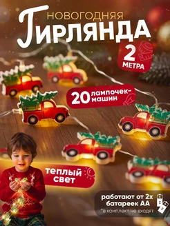 Гирлянда на батарейках новогодняя "Машинка с елкой"