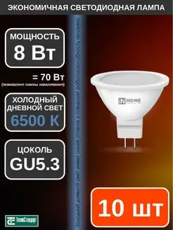 Лампа светодиодная LED JCDR 8Вт GU5.3 6500К 10шт