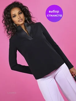 Блузка свободная с вырезом топ с длинным рукавом офис