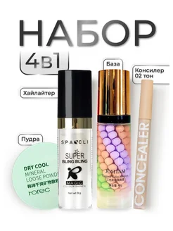 4в1 Набор база под макияж хайлайтер консилер пудр