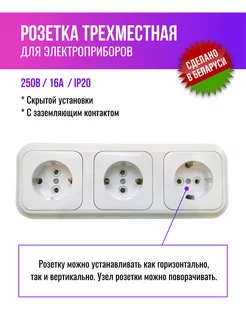 Трехклавишный выключатель и одинарная розетка без зеземления