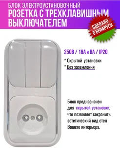 Трехклавишный выключатель и одинарная розетка внутренняя