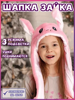 Шапка Зайка светящаяся с подвижными двигающимися ушками
