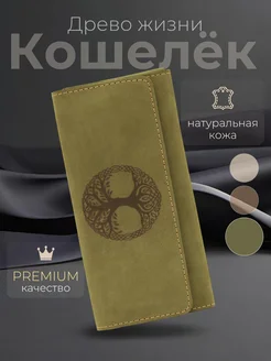 Кошелек женский натуральная кожа большой Древо жизни зеленый