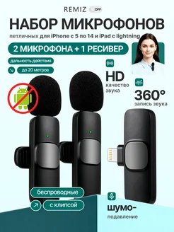 Петличный микрофон беспроводной iphone lightning 2 шт