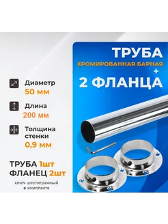 Труба хромированная барная L-200 мм d-50мм 1шт