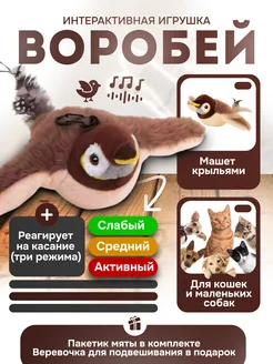 Игрушка для кошек и собак интерактивная летающая птичка