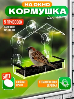 Кормушка для птиц на окно на присосках прозрачная уличная