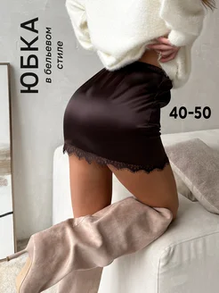 Юбка мини атласная с кружевом бельевая