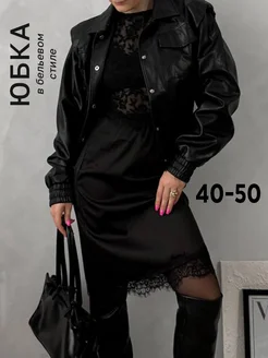Юбка атласная с кружевом бельевая миди