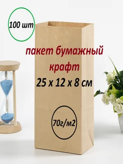 Крафт пакет без ручек 120х80х250мм 100 штук (70г м кв )