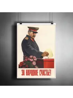 Постер плакат "Советский плакат И.В. Сталин, СССР" А3