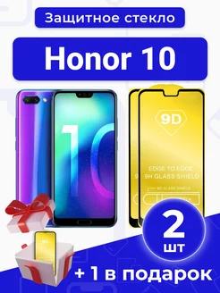 Защитное стекло для Honor 10 с чёрной рамкой под чехол