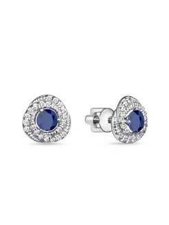Ювелирные серьги пусеты с натуральными сапфирами